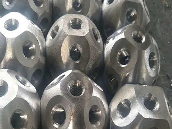 3、三河螺栓球三河网架锥头锻造成型后采用铣床加工锥头与杆管内壁相配合的台阶、锥头小端平面及焊缝坡口,锥头两端面垂直度应符合技术标准。